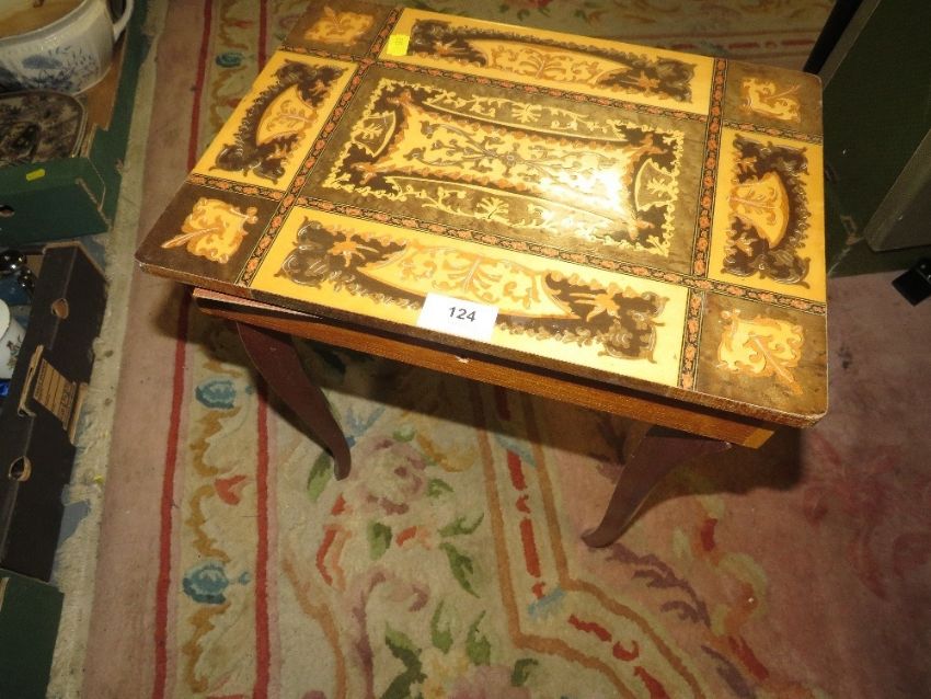 A small Italian musical table together with a vintage cased electric Singer sewing machine