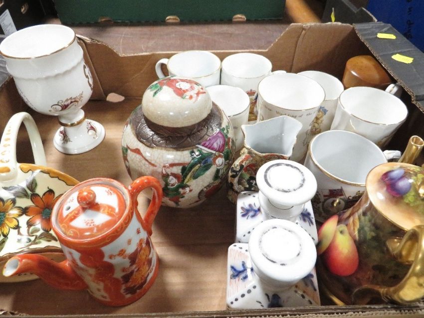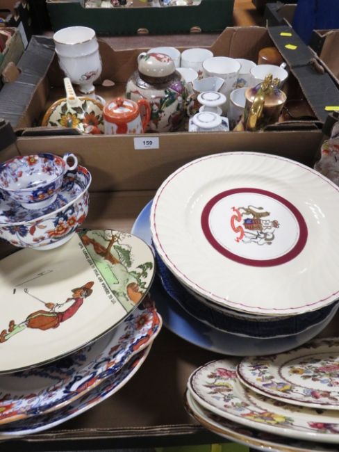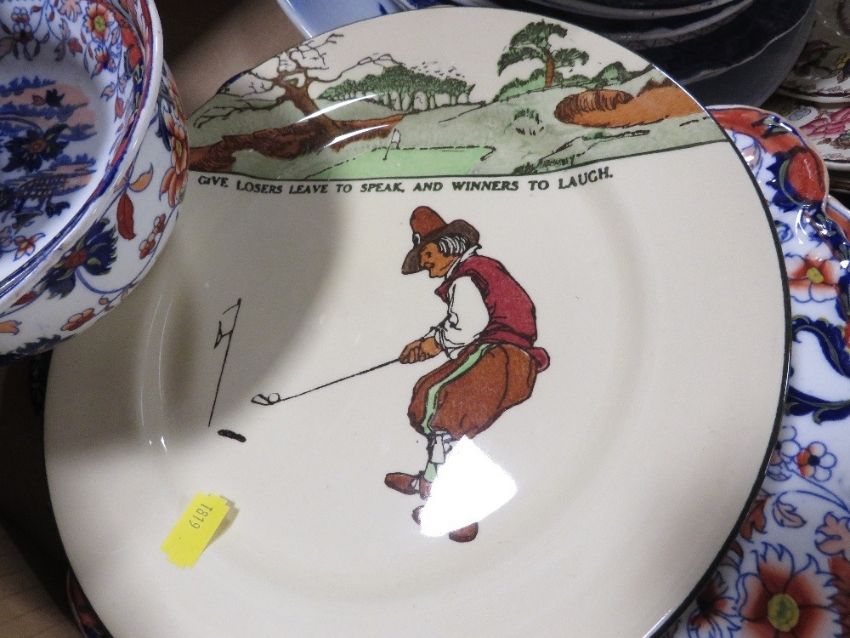 Two trays of assorted ceramics to include Royal Doulton golfing plate etc