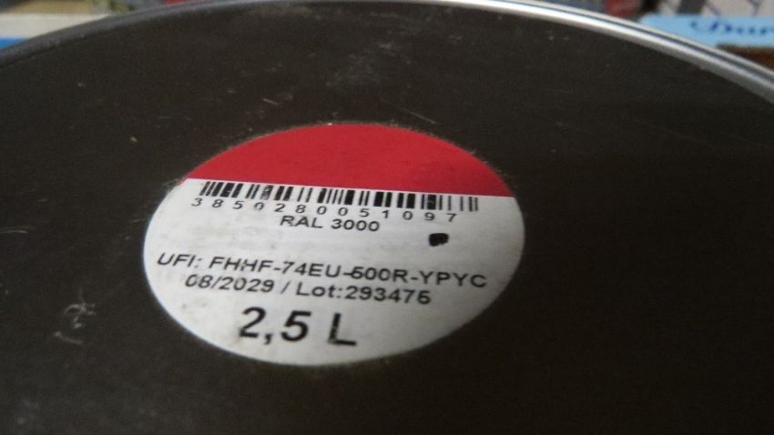 6 x 2.5 litre tins of red Hammerite type Hardlux anti rust steel paint