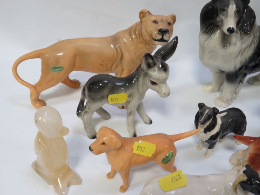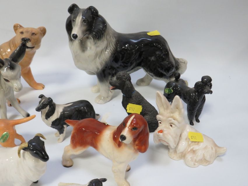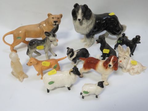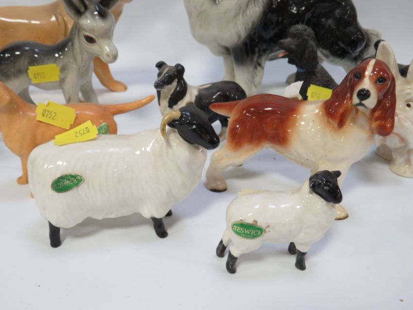 Two small trays of assorted Beswick and other figurines to include dogs and sheep