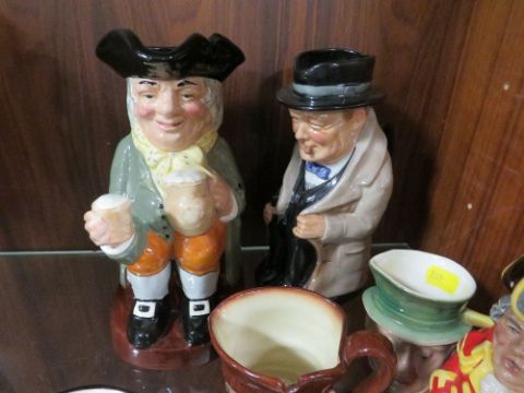 A collection of assorted Character and Toby jugs to include A royal Doulton Winston Churchill example