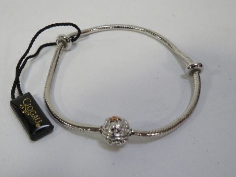 Clogau - a 925 silver snake link bracelet with unusual Celtic design integrated locket with gold heart coloured detail with original inner and pouter boxes