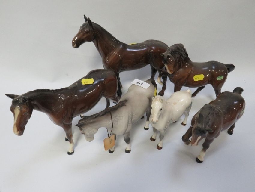 Six assorted Beswick horses A/F - one ear from grey horse missing