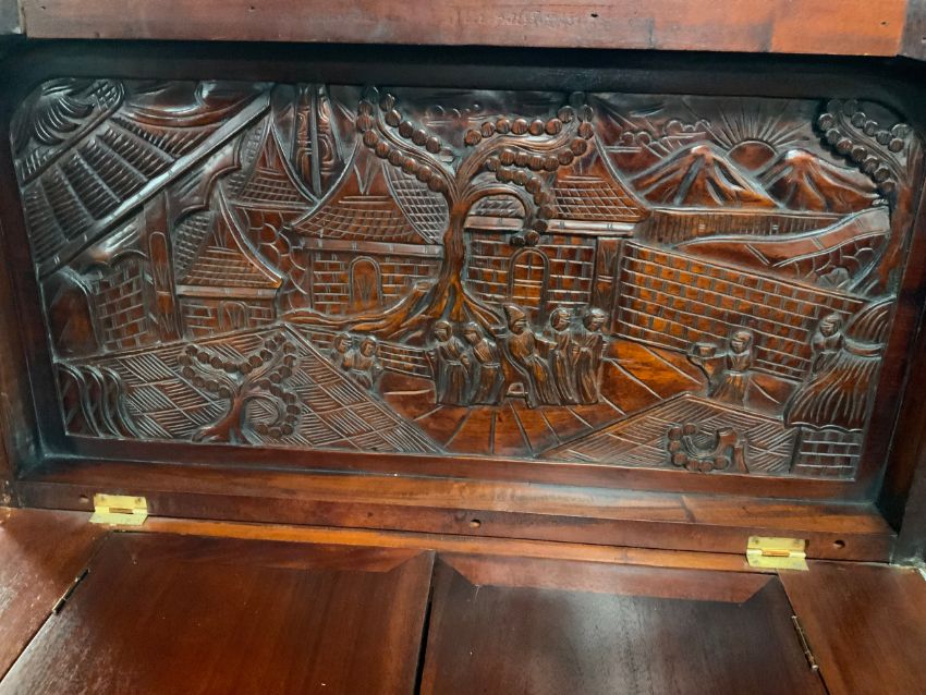 A carved mahogany drinks cabinet W 88 cm