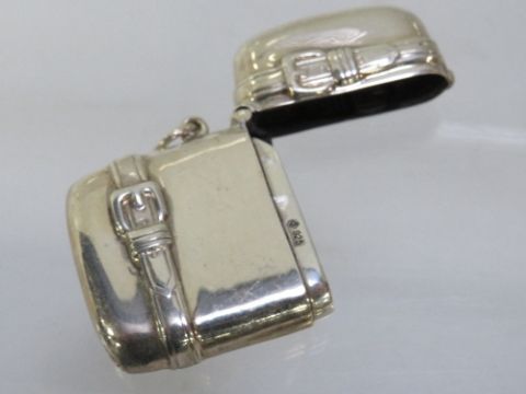 A novelty vesta stamped 925 in the form of a twin strap suitcase approx weight 21g
