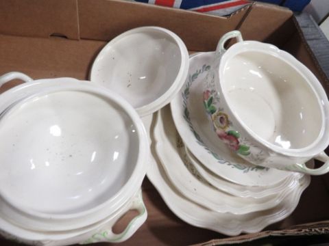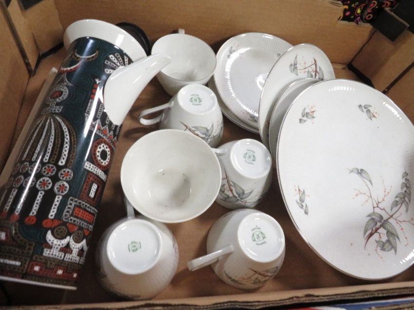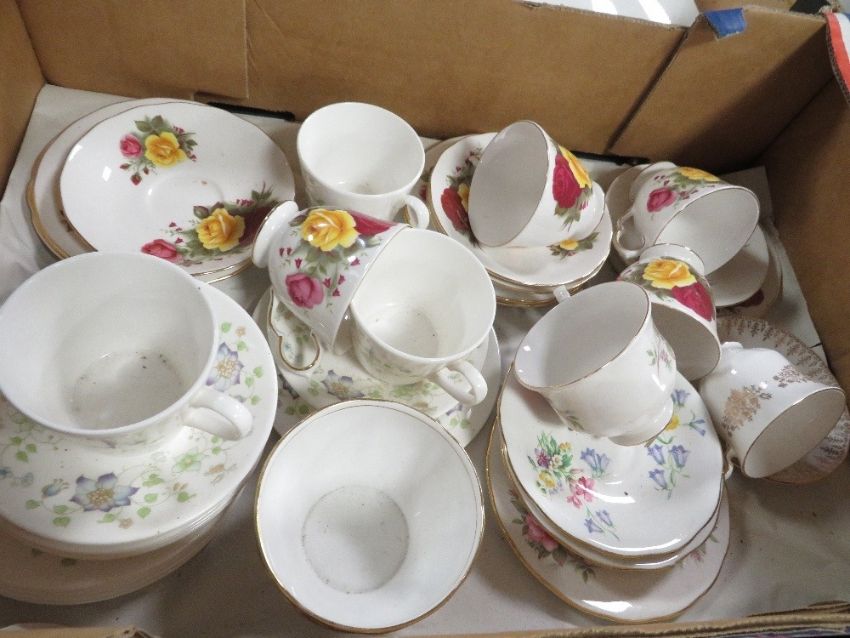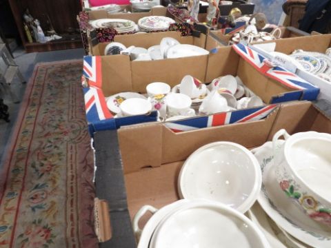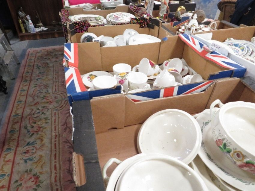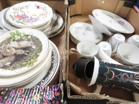 Four trays of assorted ceramics to include Doulton and Portmeirion etc