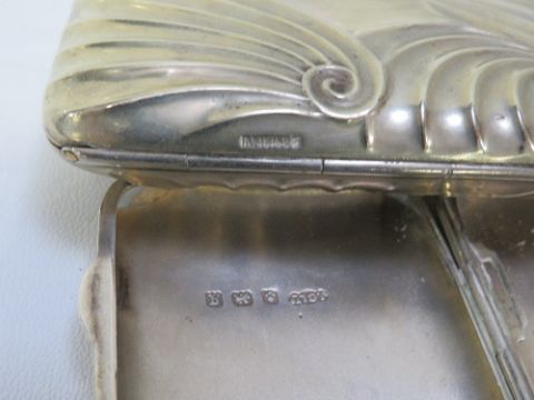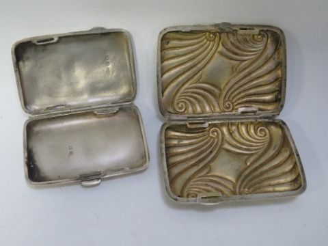 A small hallmarked silver cigarette case approx weight 47g together with a silver plate example (2)