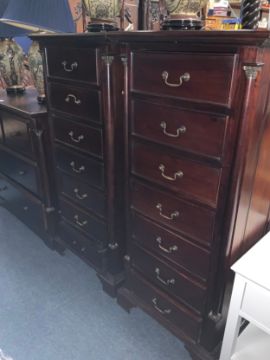 A pair of tall and slim mahogany seven drawer chests H 137 cm W 62 cm. (2)