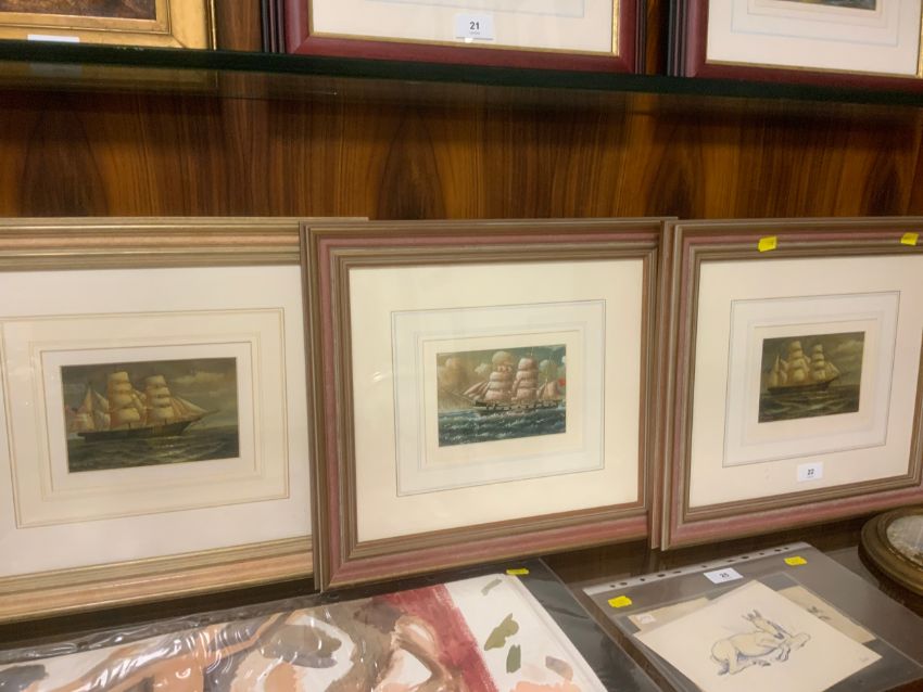 H Darkey and A Vianni - Three small oil paintings depicting sailing boats, signed and framed and glazed, 10 x 15.5 cm. (3)