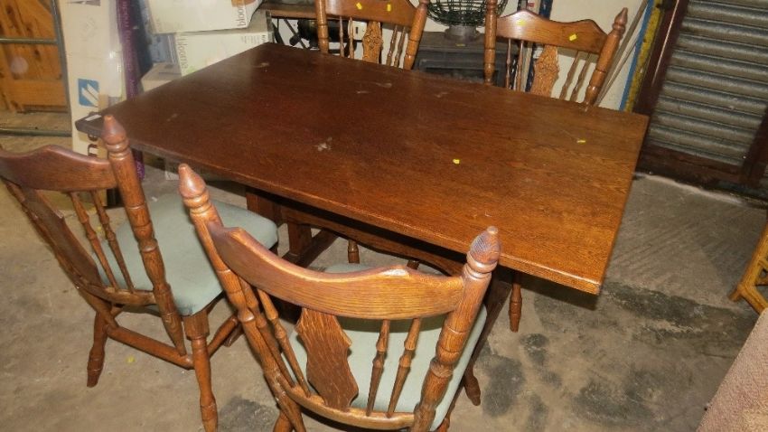 A modern oak finished dining table and four chairs