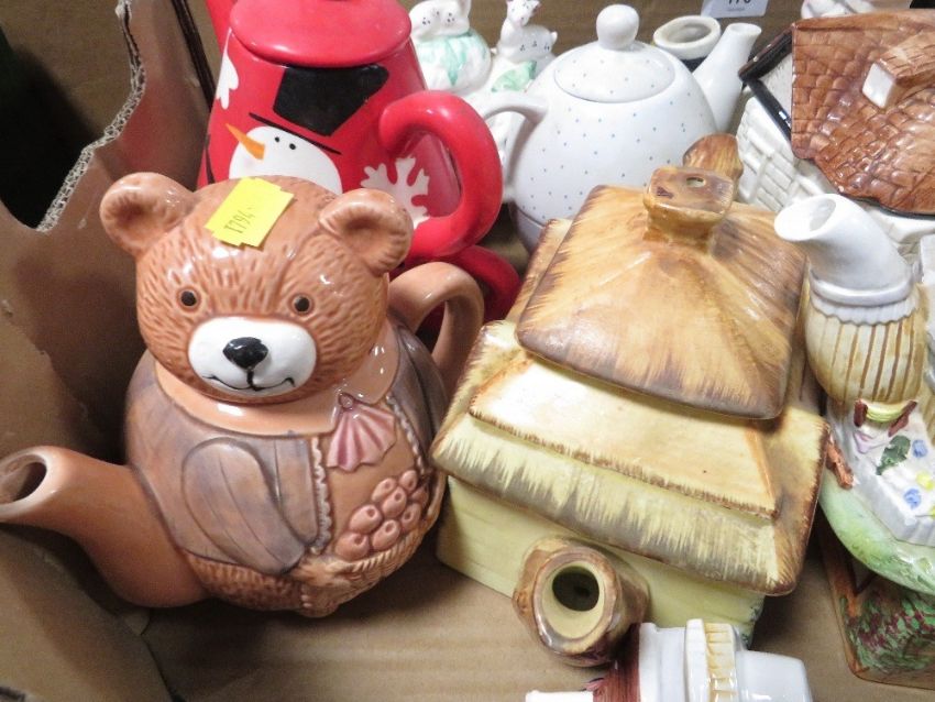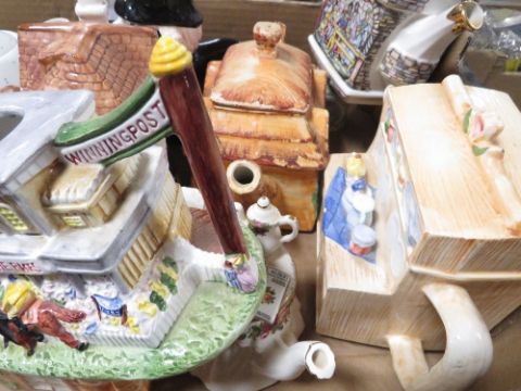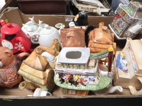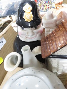 A tray of assorted Novelty tea pots