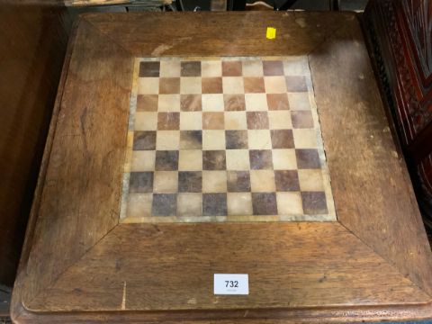 An antique oak pedestal games table