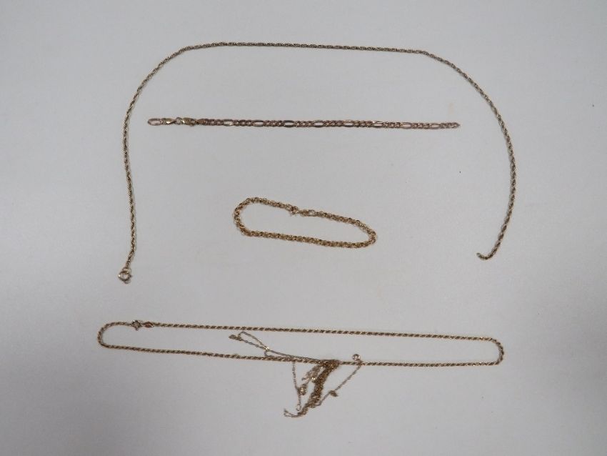 An assortment of 9 carat gold chains approx combined weight 13.5g