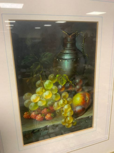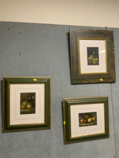 R Mario - Three small oil paintings depicting still life fruit, signed, framed, 16 x 11 cm. (3)