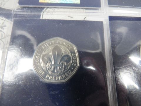 2019 issues 5 uncirculated 50p's to include Kew gardens, Girl Guides etc all change checker certified examples