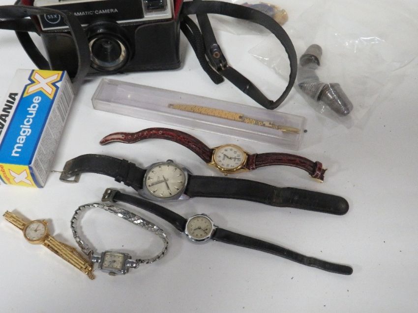 A small selection of collectables, to include badges, thimbles, watches and a vintage camera