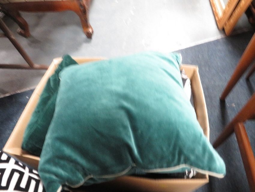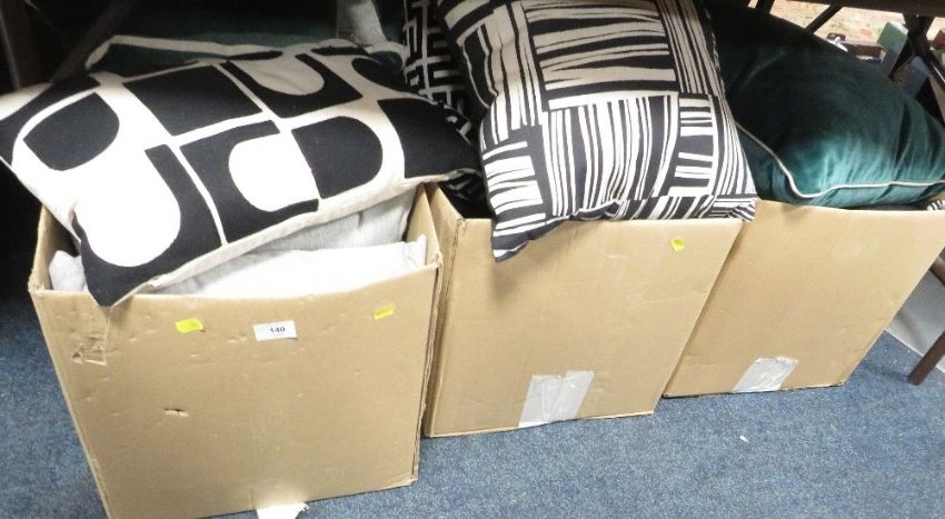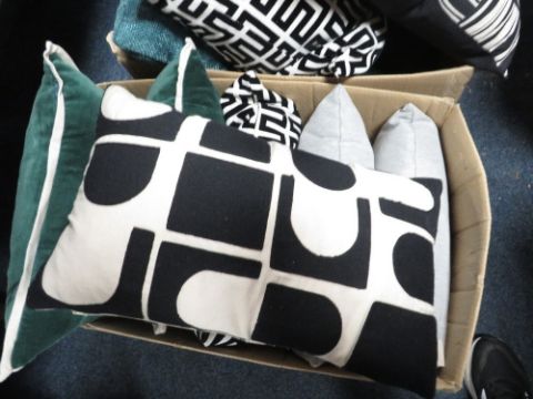Three trays of ex-show home assorted cushions