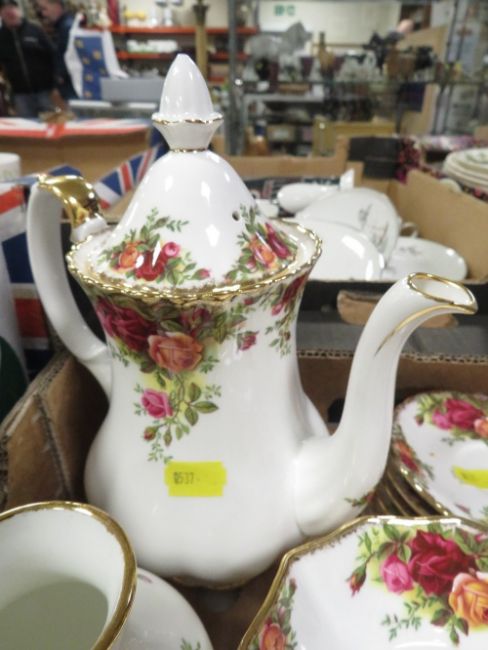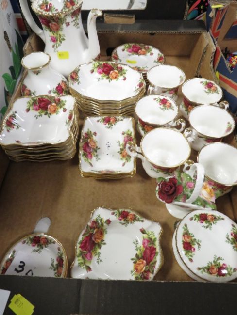 A tray of assorted Royal Albert Old Country Roses tea and dinner ware