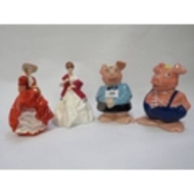 A Royal Doulton figurines with a Royal Worcester example and two wade Natwest piggy banks