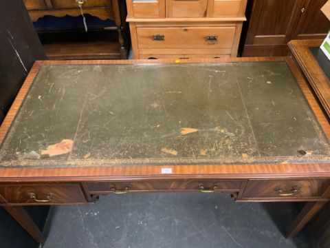 A reproduction mahogany leather top desk. A/F