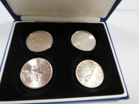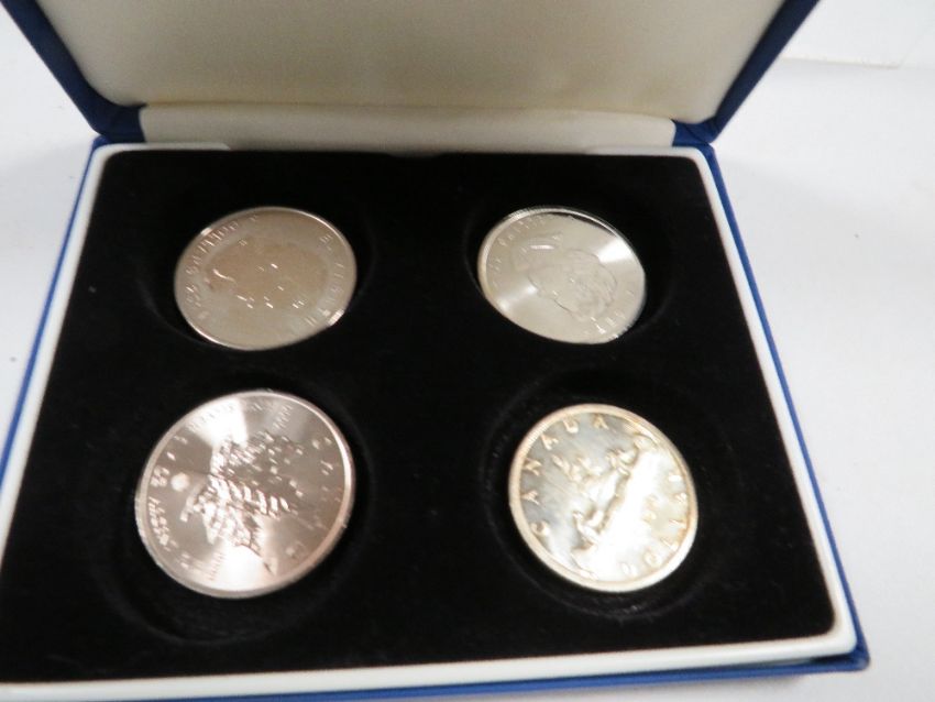 Canada 1959 silver dollar, along with 2014 maple leaf 1oz coins x 2 and 2014 eagle 1 oz (4)