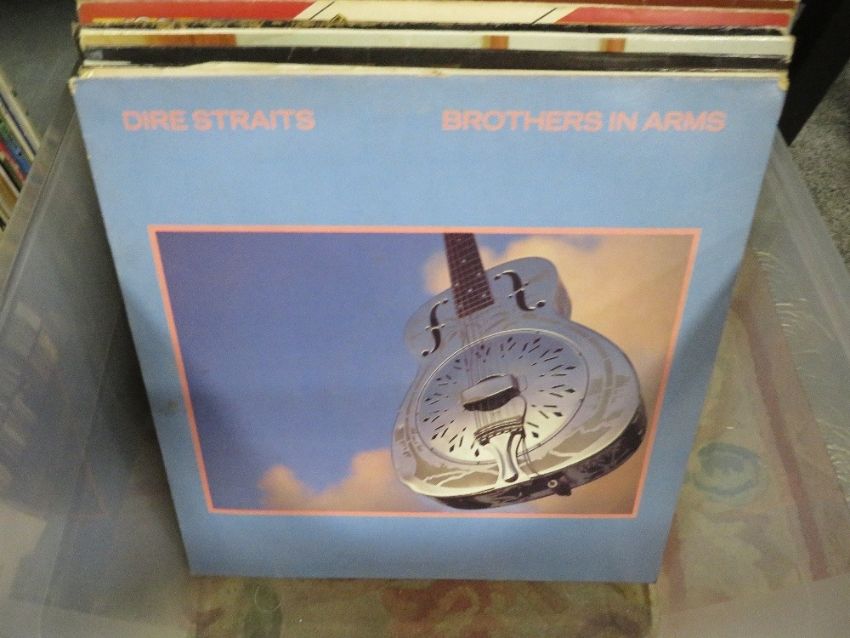 Four trays of assorted LP records to include Eddie Grant and Dire Straits etc