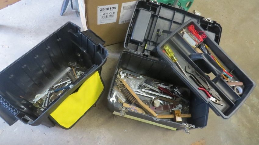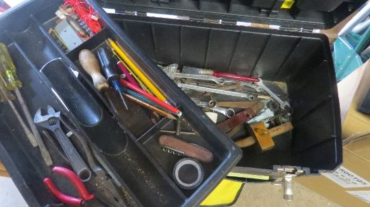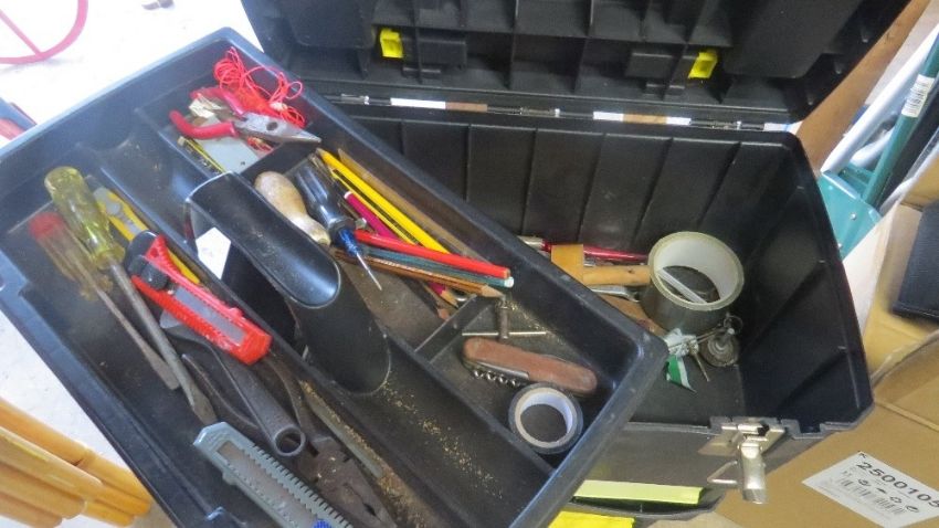 A pull along tool box and contents