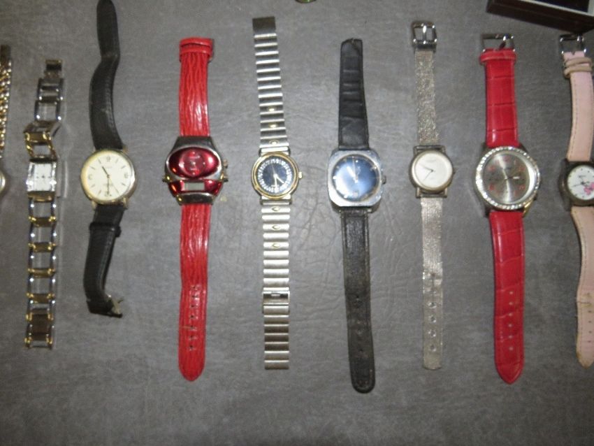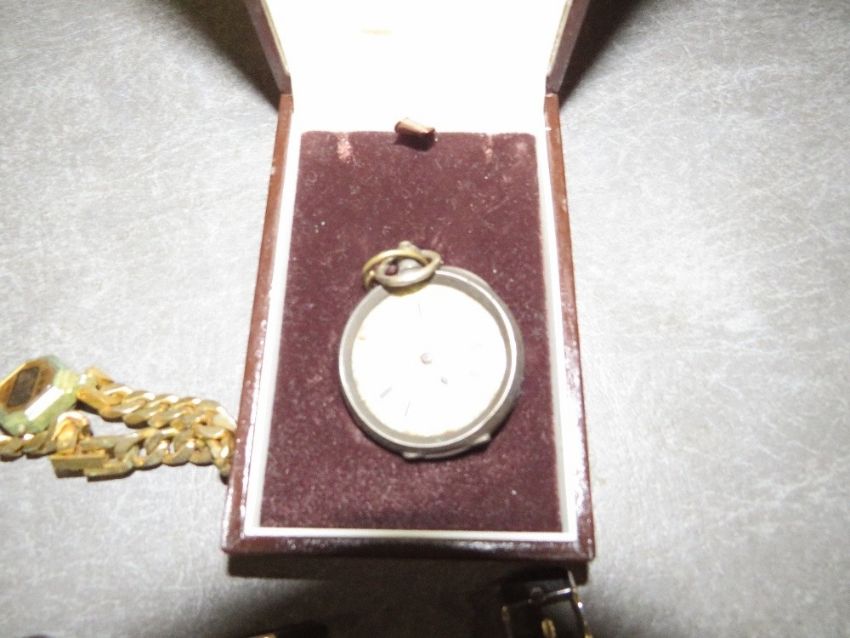 A tray of assorted wrist watches to include a silver fob watch