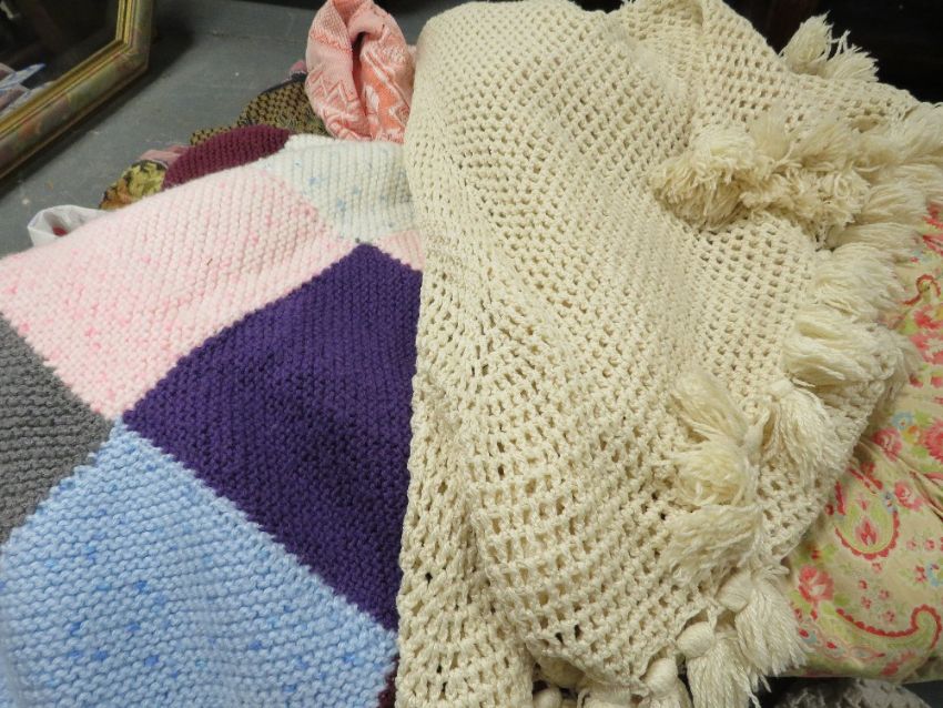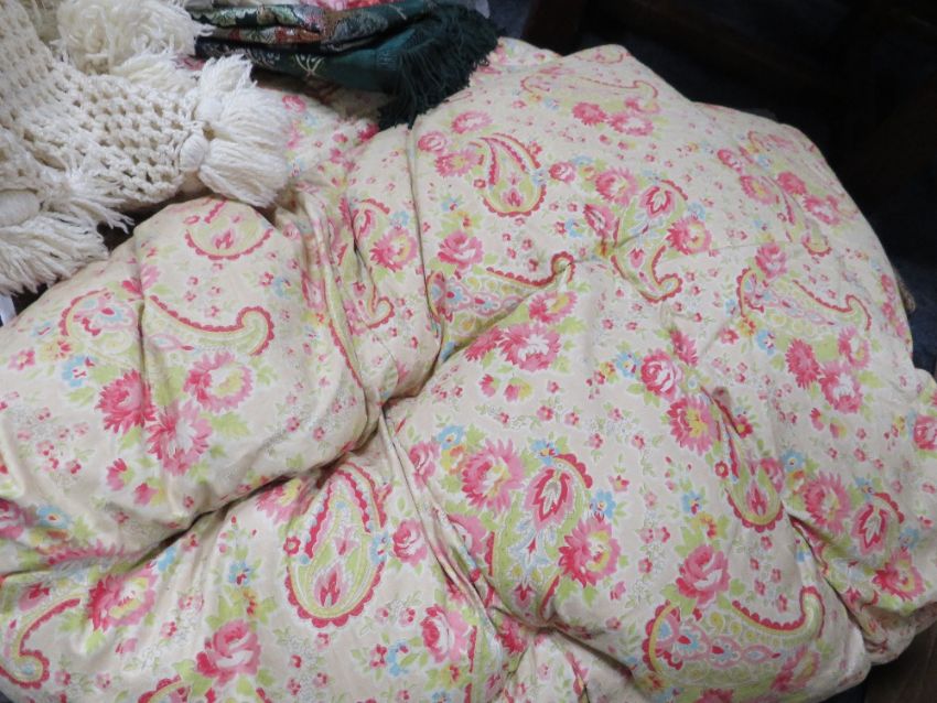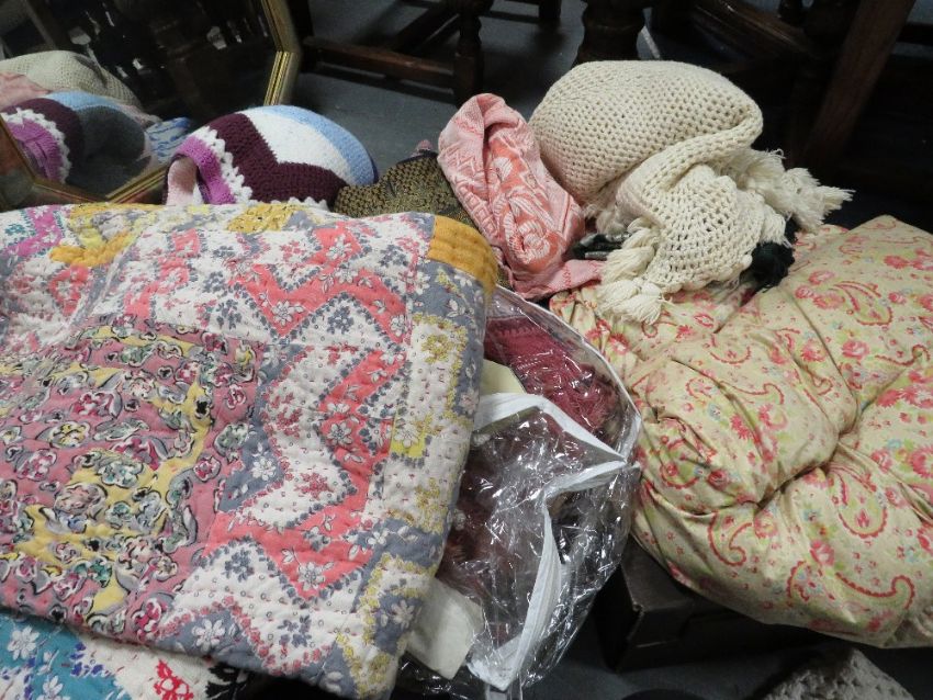 A quantity of fabrics, vintage quilts etc