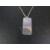 A silver dogtag on a silver chain