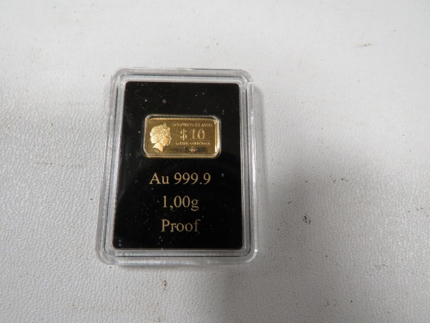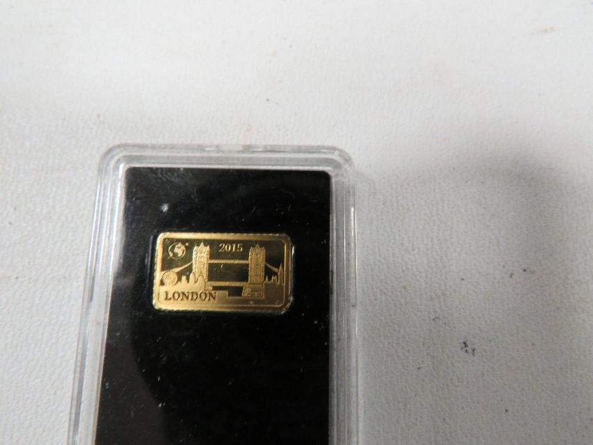 Solomon Islands 999.9 gold 10 dollar ingot, 2015 London Bridge type, 1g, in capsule