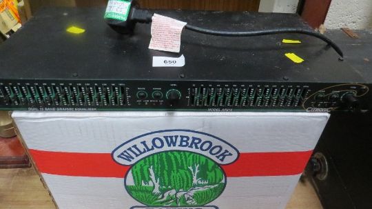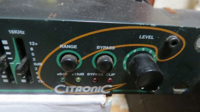 A Citronic 15 band graphic equalizer, model AP215, along with a vintage car stereo & four speaker system