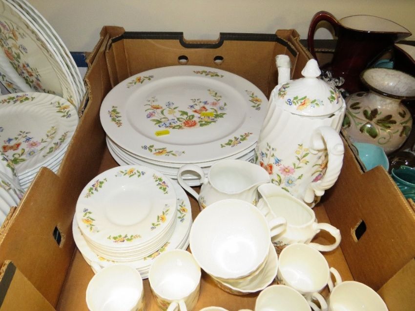 A large quantity of Aynsley Cottage Garden tea and dinner ware over 4 trays