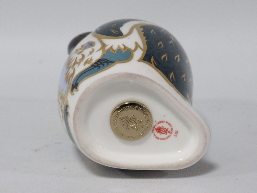 A Royal Crown Derby penguin and chick paperweight with gold stopper