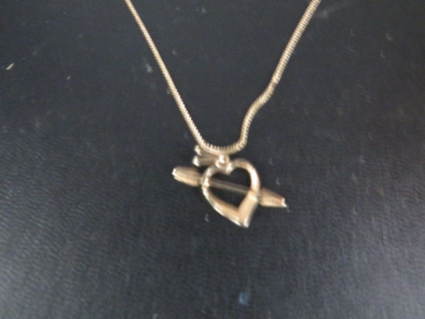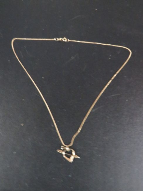 A hallmarked 9 carat gold chain together with a hallmarked 9 carat gold heart and arrow pendant approx combined weight 1.9g