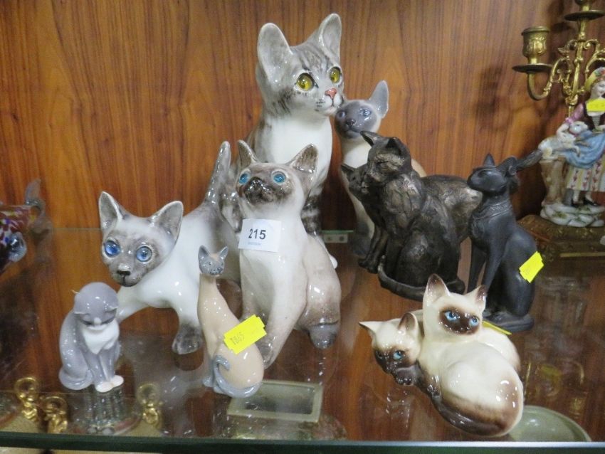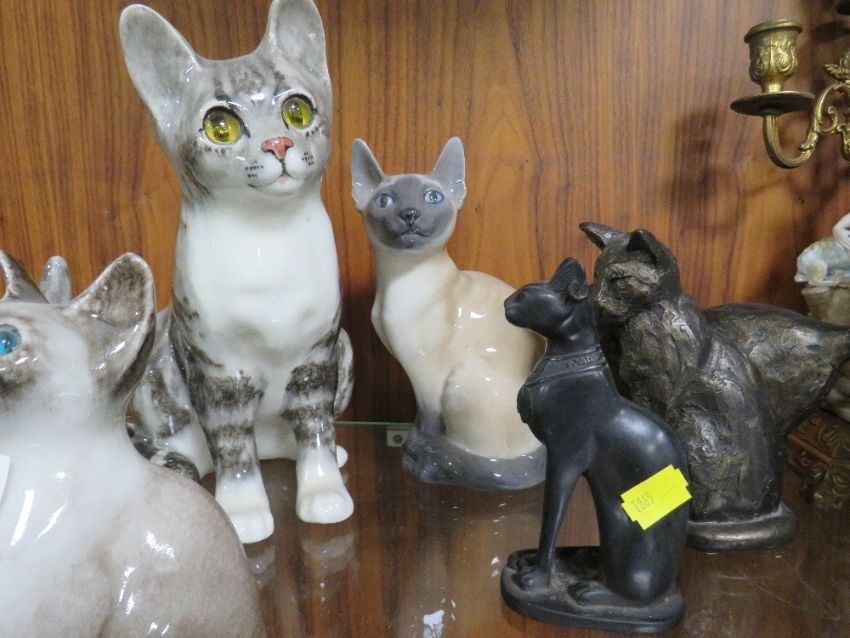 A collection of assorted cats to include Beswick, Royal Copenhagen etc