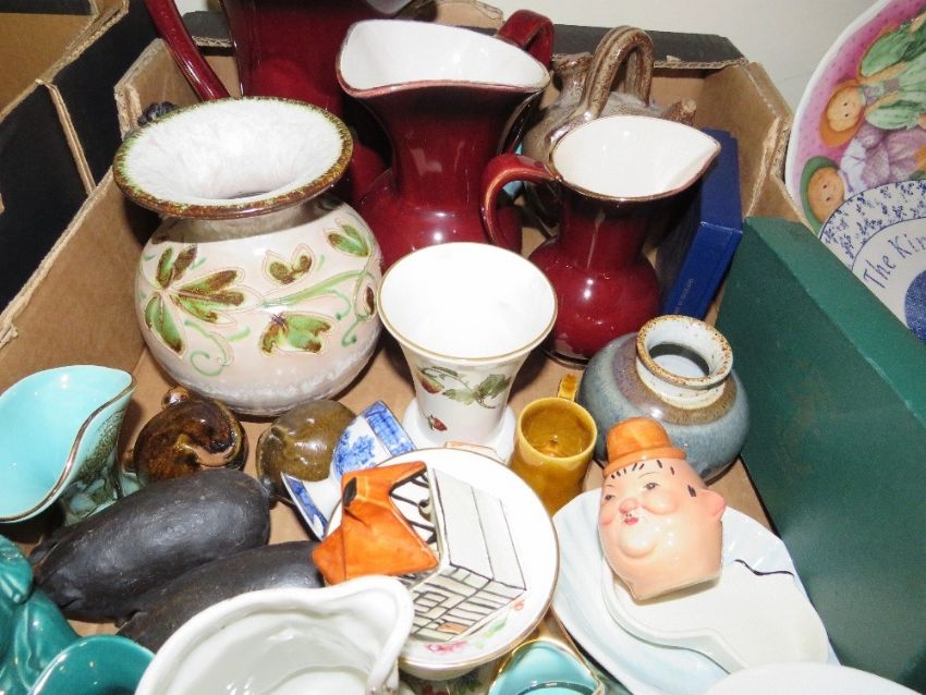 A tray of assorted ceramics to include Franklin Mint ceramic moulds etc together with a tray of assorted ceramics (2)