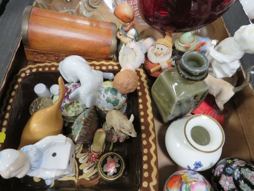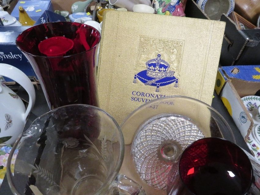 Two trays of assorted ceramics and glassware to include Wedgwood etc