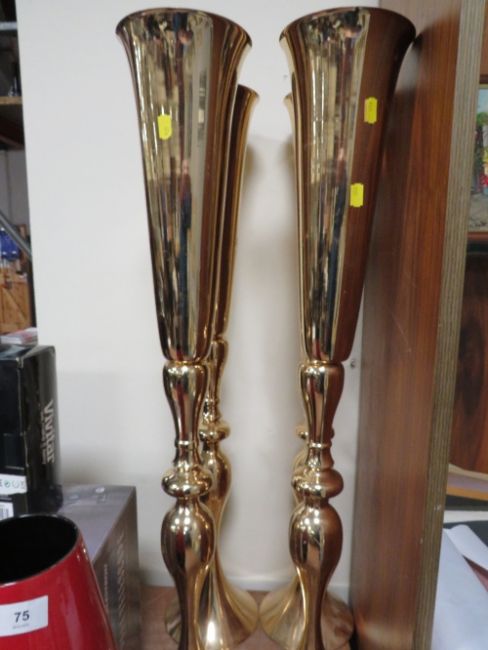 A John Rocha vase together with four tall gilt metal vases (5)