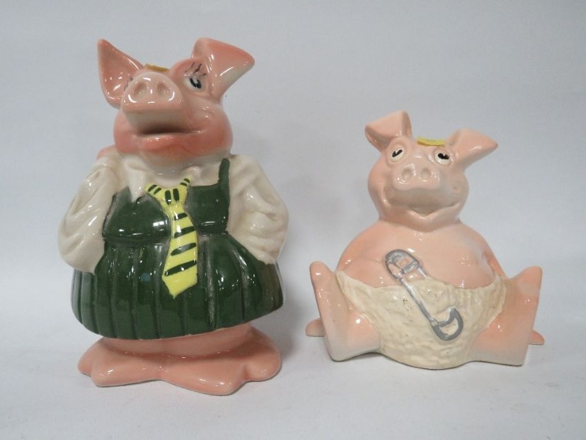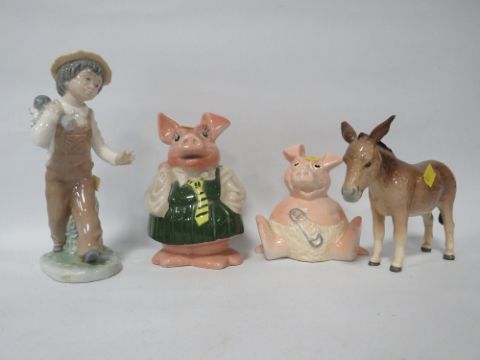 Two Wade Natwest pigs together with a Beswick donkey and a Nao figure A/F