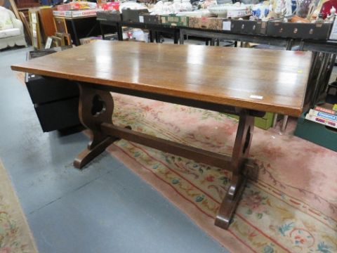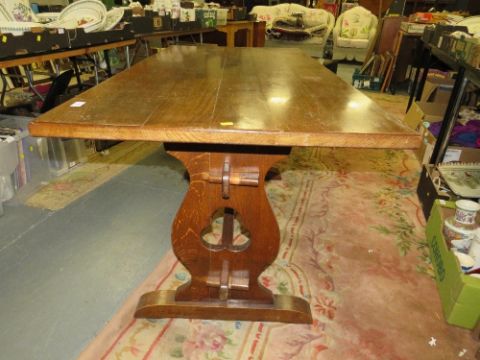 A vintage rectangular oak dining table