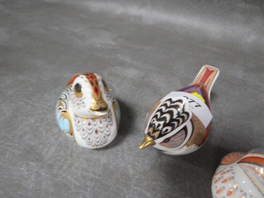 Three Royal Crown Derby Collectors Guild paperweights with gold stoppers - Teal Duckling, Duckling and Cested Tit A/F
