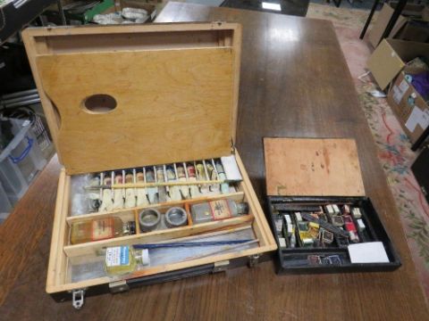Two vintage travelling artists sets