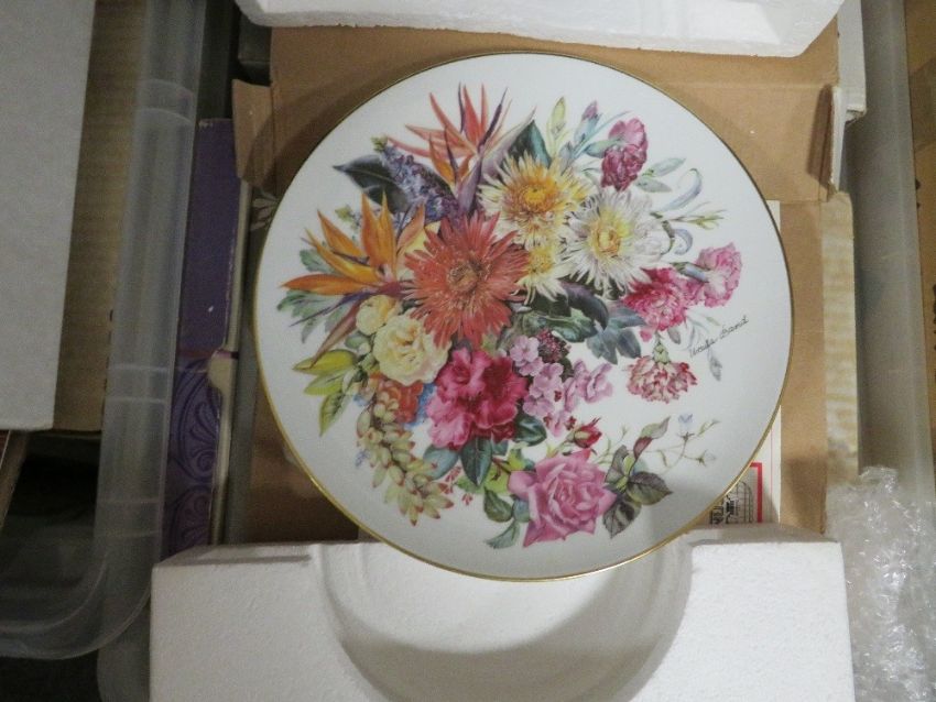 Three trays of assorted collectors plates