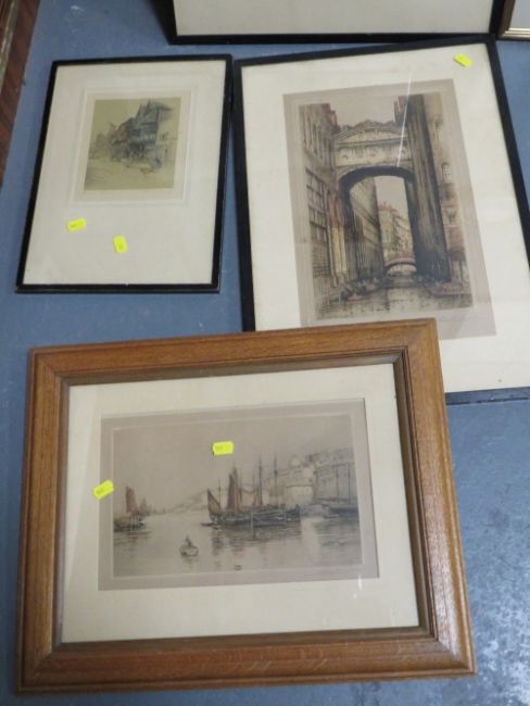 A collection of five assorted framed and glazed etchings, to include 'Trawlers At Home, Buxham', by Henry G Walker, together with an unframed map of Staffordshire