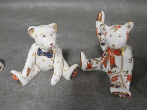 A Royal Crown Derby Collectors Guild paperweight Scruff with gold stopper together with two teddy bears no stoppers and a Coalport Paddington bear figurine (4)