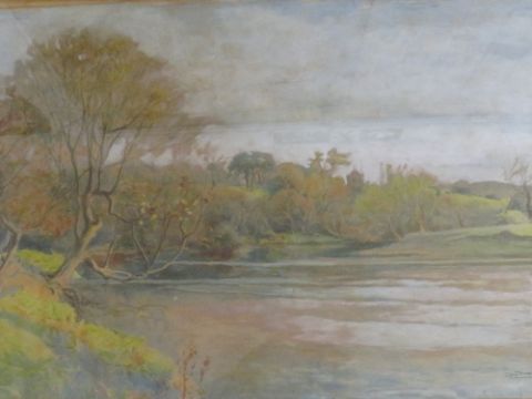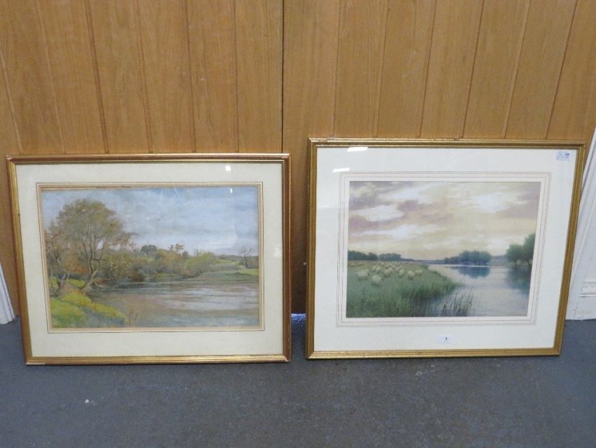 Two framed and glazed watercolours, comprising H FOSTER NEWEY - sheep grazing by a river, signed lower left, 35 x 47 cm and GEO PHOENIX - a riverscape signed lower right, 36 x 52 cm (2)