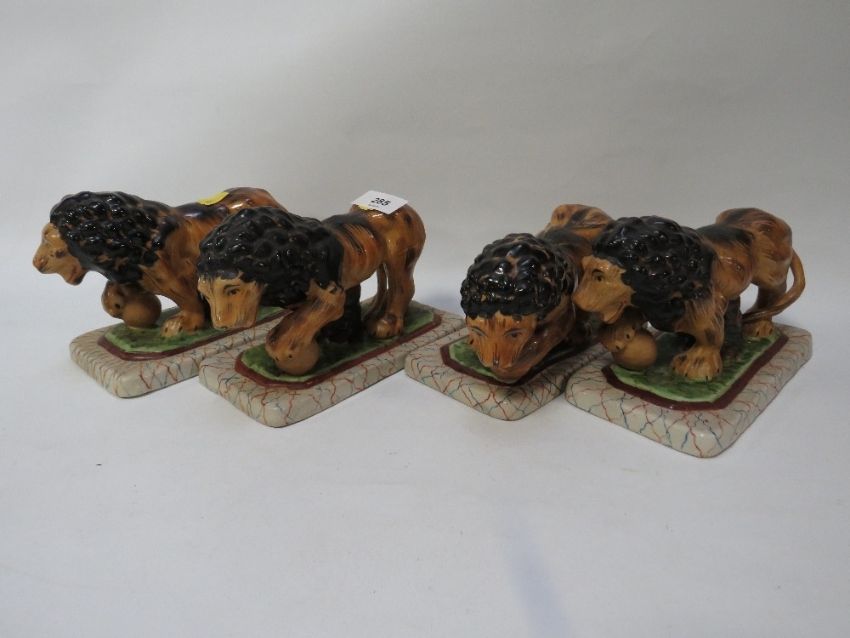 Four reproduction Staffordshire style figures of lions