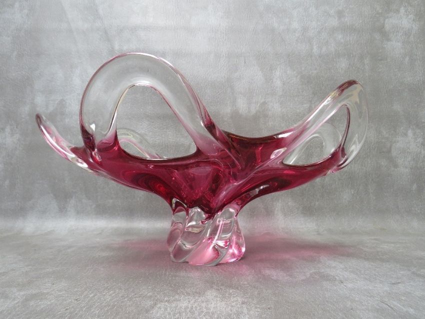 JOSEPH HOSPODKA FOR CHRIBSKA, a large vintage mid 20th century Czech studio glass decorative bowl, H 19 cm, Dia. 37 cm