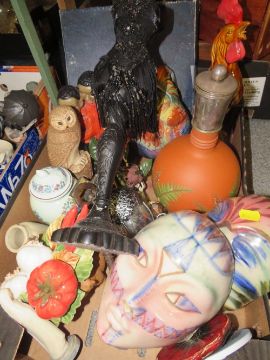 Two trays of assorted ceramics and collectables to include blue & white ware
